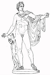 Apollon | Gott der Poesie, des Lichtes, der Pest und der Prophetie Musenführer (Beiname: Musagetes) Gleichgesetzt mit dem Sonnengott Phoibos Sohn des Zeus und der Titanin Leto Vater des Asklepios Zwillingsbruder der Artemis Himmelskörper: Sonne | Kithara (Saiteninstrument) Pfeil und Bogen | ![]() |