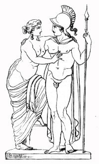 Ares | Gott des Krieges und der Schlachten Sohn des Zeus und der Hera Vater von Deimos und Phobos Ehebrecherische Liebesbeziehung zu Aphrodite Himmelskörper: Planet Mars | Fackel Hund und Geier Speer Schild Helm | ![]() |