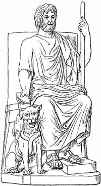 Hades | Bruder des Zeus Bemächtigte sich durch Raub der Persephone Herrscher der Unterwelt seine Begleiter sind Thanatos „der Tod“ und Hypnos „der Schlaf“ | Fruchtmaß Füllhorn Stab: dreiköpfiger Kerberos | ![]() |